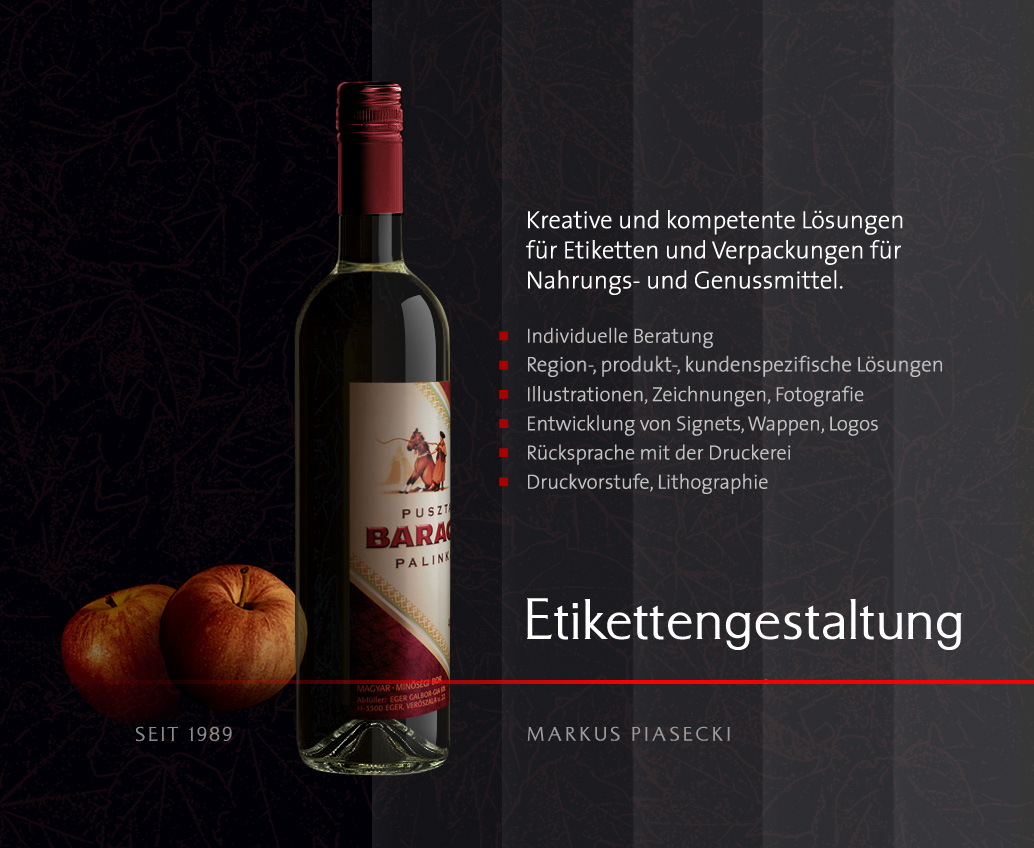 Piasecki, Verpackung, Lagel, Design, Wein, Sekt, Brand, Wodka, Bier, Glühwein, Cocktail, Lebensmittel